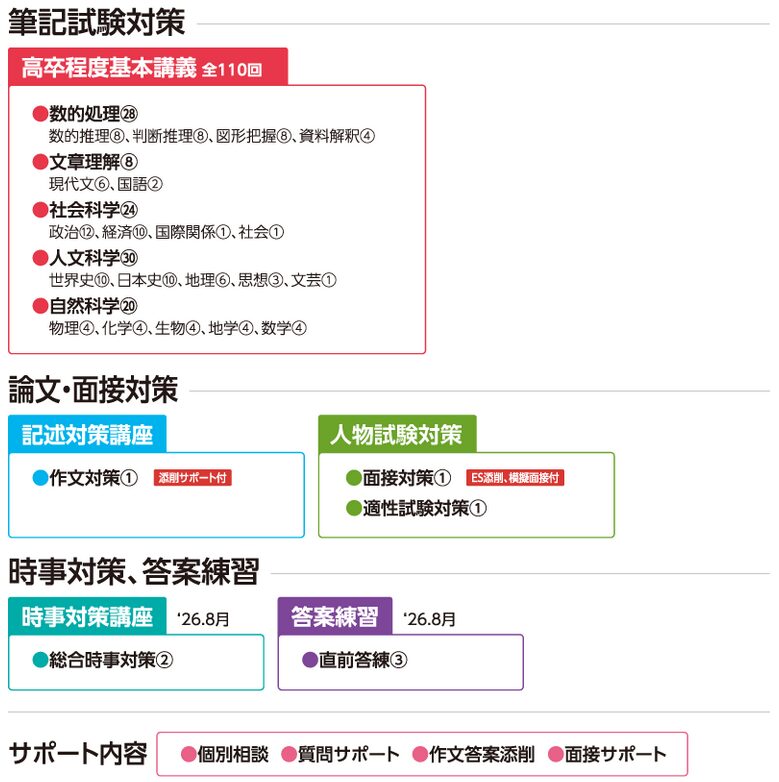 大卒公務員に比べて、高卒公務員試験の講座は少ないです。